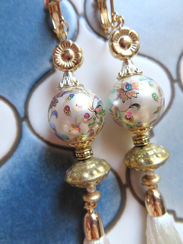 中国をイメージしたロングタッセルがエレガントな耳飾り。