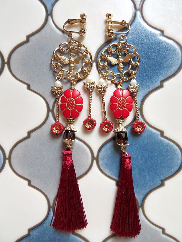 中国をイメージしたロングタッセルがエレガントな耳飾り。