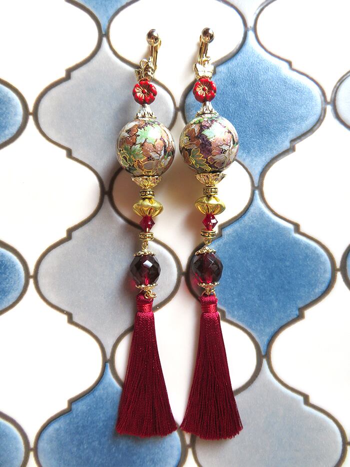 中国をイメージしたロングタッセルがエレガントな耳飾り。