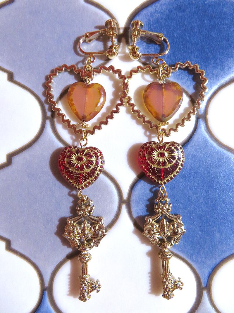 ハートと鍵のモチーフがロマンティックな耳飾り。