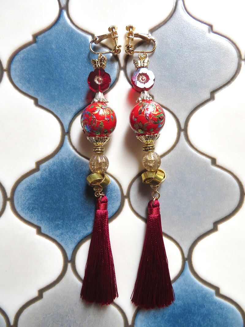 中国をイメージしたロングタッセルがエレガントな耳飾り。