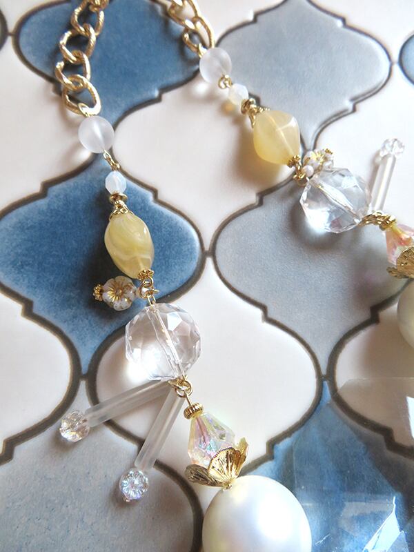 硝子パーツが少し重さがあります。また、硝子パーツ、ヴィンテージパーツ共に元から小さなキズやカケが含まれます。