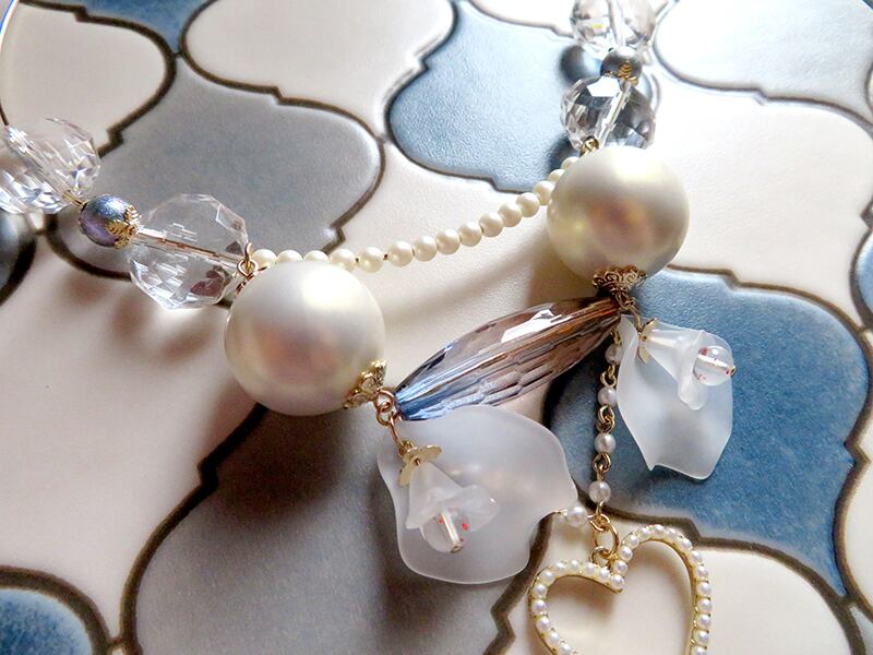 着用すると胸元がシャンデリアのように華やかになって、とても可愛いデザインです。