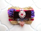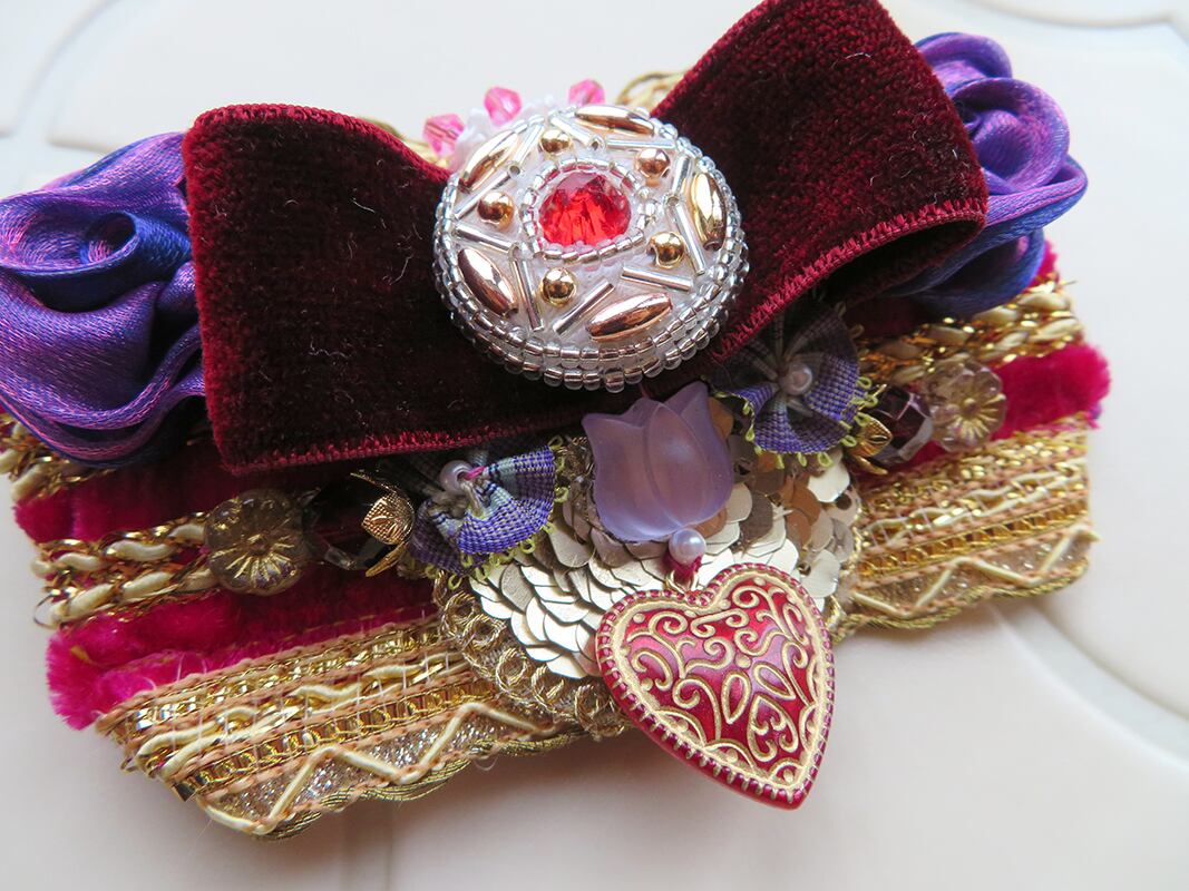 ハートのチャームはドイツ製、髪飾りの中央のパーツは台湾で見つけたデザインボタンです。