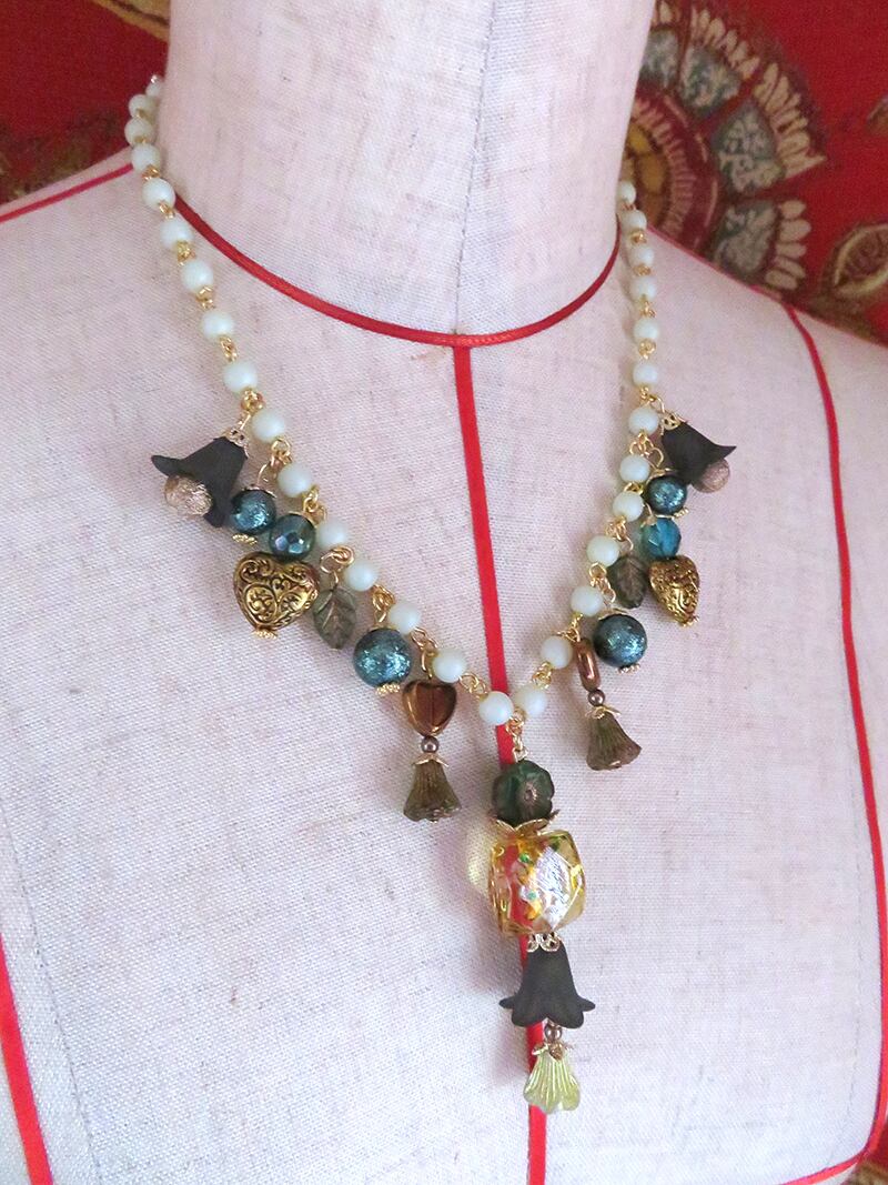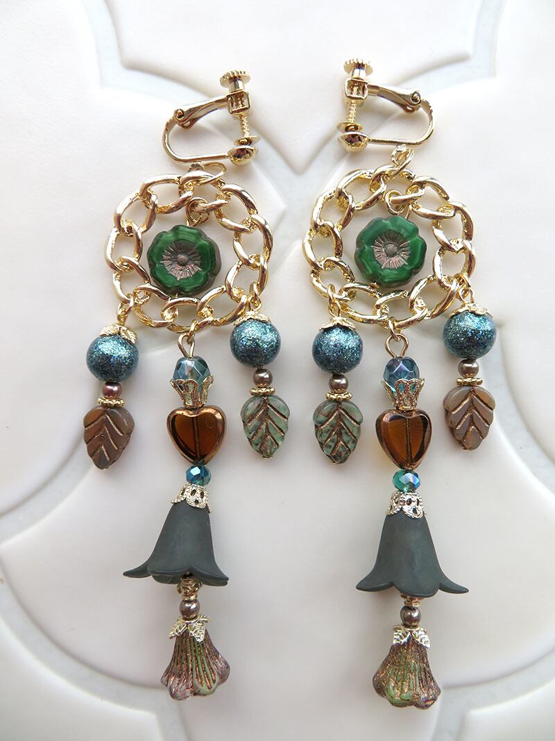 ヴィンテージのパーツやチェコガラスビーズ等を使用し可愛らしくゴージャスに仕上げました。