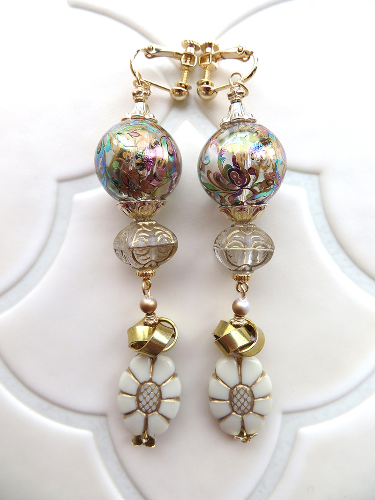 海外製のドやビーズ、ヴィンテージのパーツなどを使用しています。