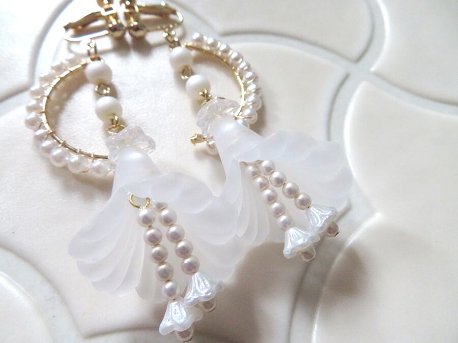 妖精から贈られるプチブーケの様な小さな贈り物をイメージした耳飾り。