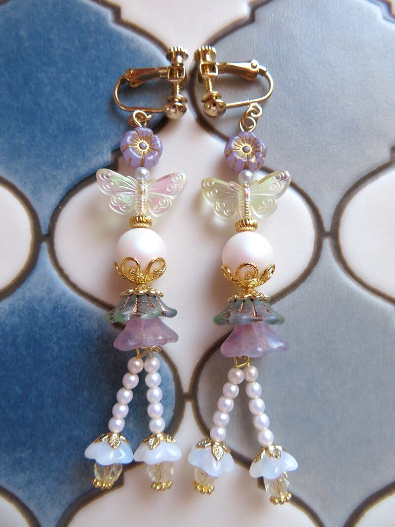 妖精から贈られるプチブーケの様な小さな贈り物をイメージした耳飾り。