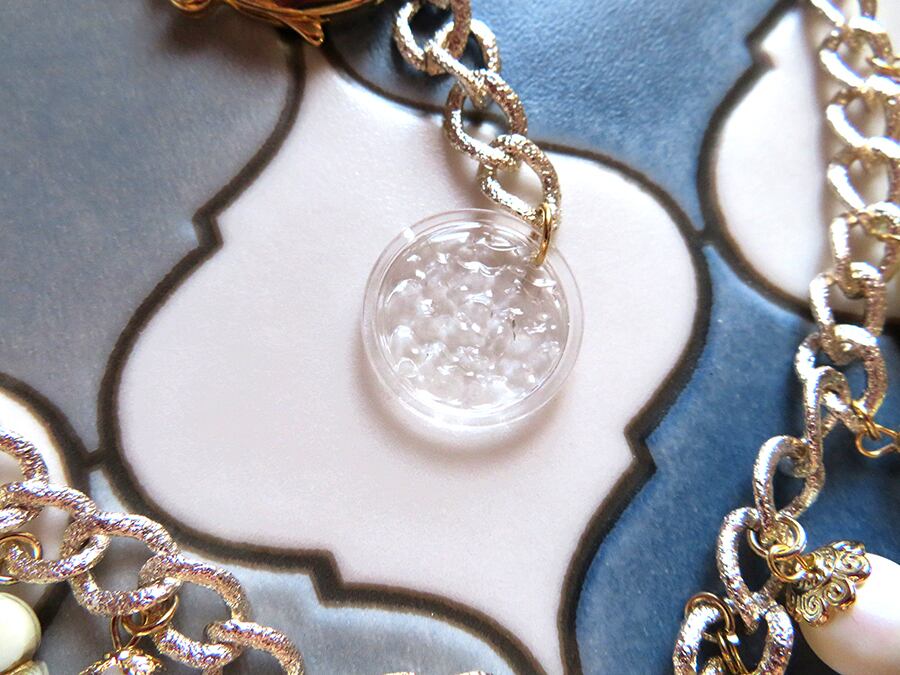 チェーンの好きな所で長さを調節出来る為、チョーカーの様に着けたりロングネックレスの様に着けたり色々楽しめるデザインです。
