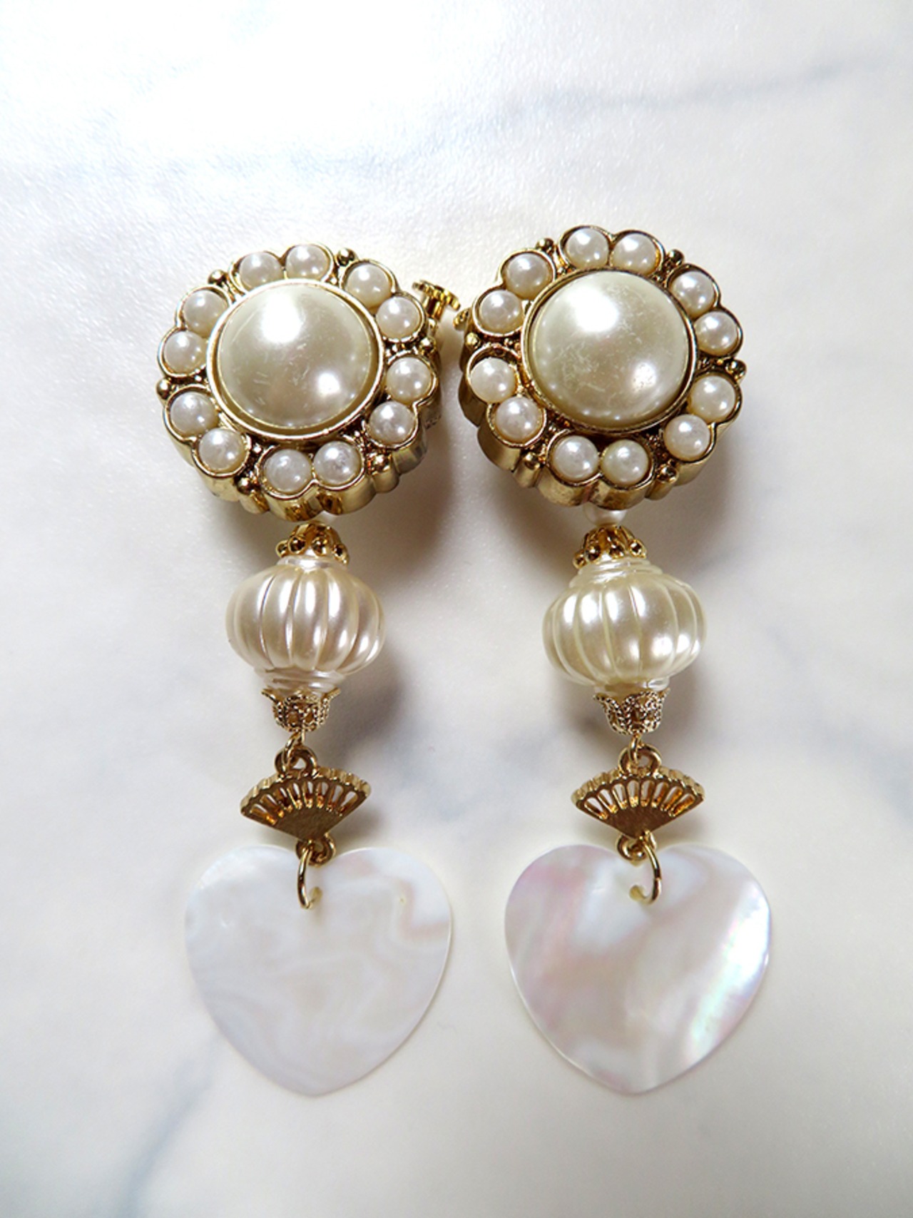 上部のパールパーツはヴィンテージボタンをそのまま使用しています。