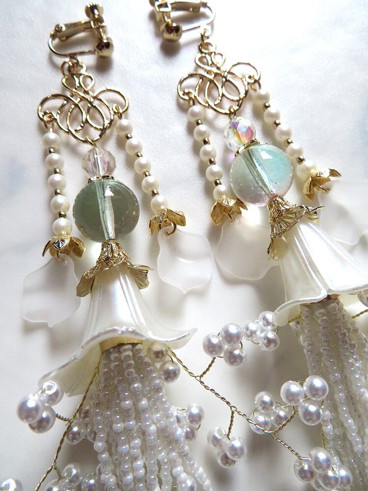 ワイヤーワークの花枝とシャラシャラと涼しげなビーズフリンジが幻想的なデザインです。