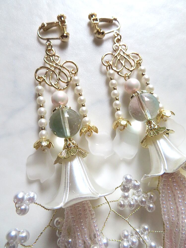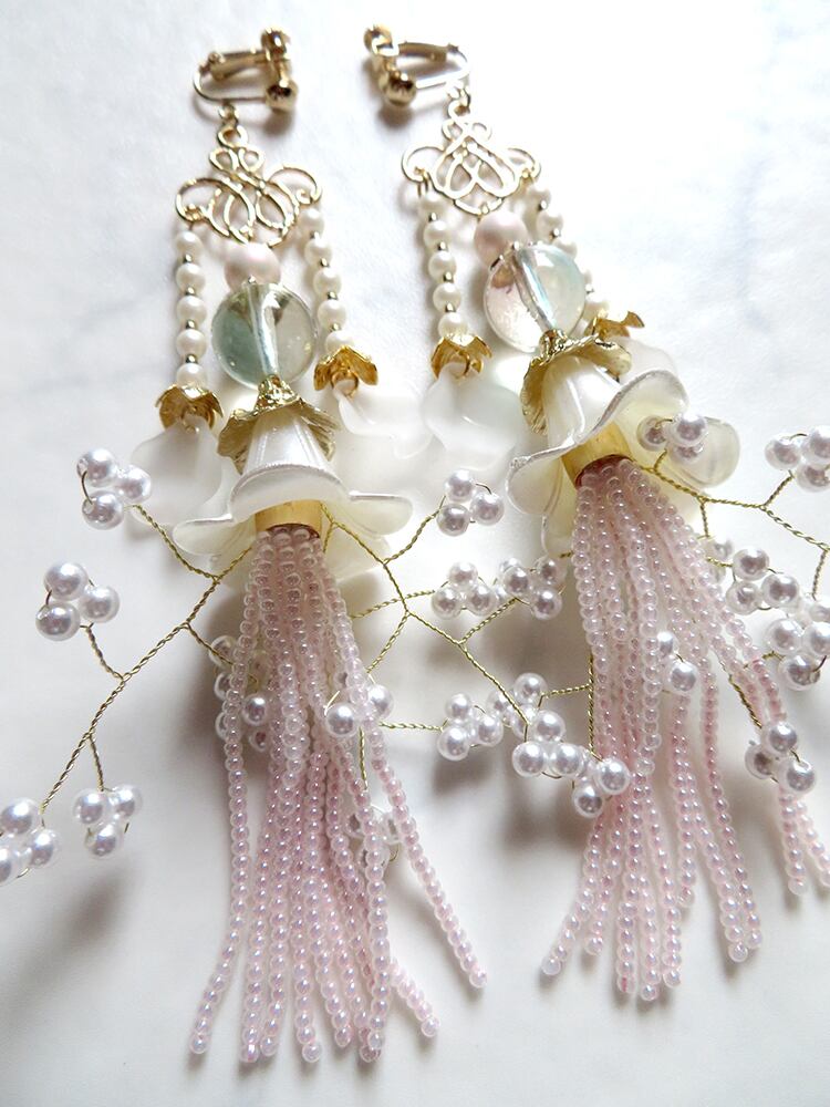 ワイヤーワークの花枝とシャラシャラと涼しげなビーズフリンジが幻想的なデザインです。