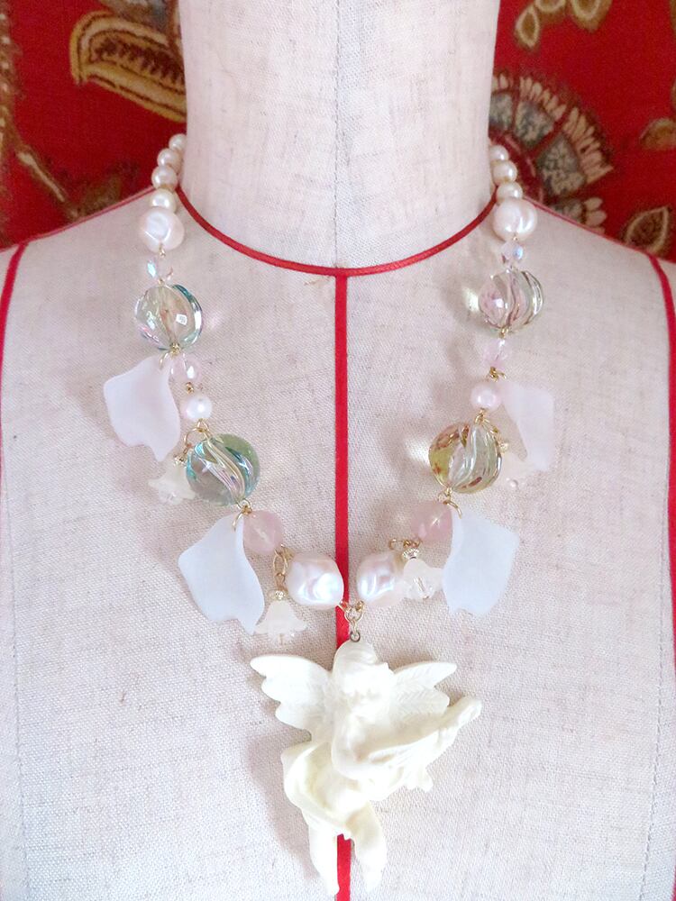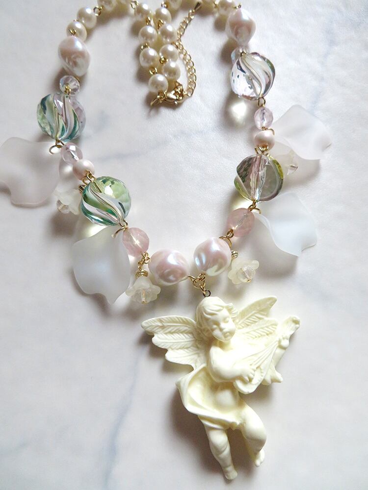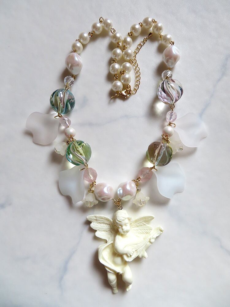 大きな天使チャームがとしゃぼんカラーがファンタジックなネックレス。