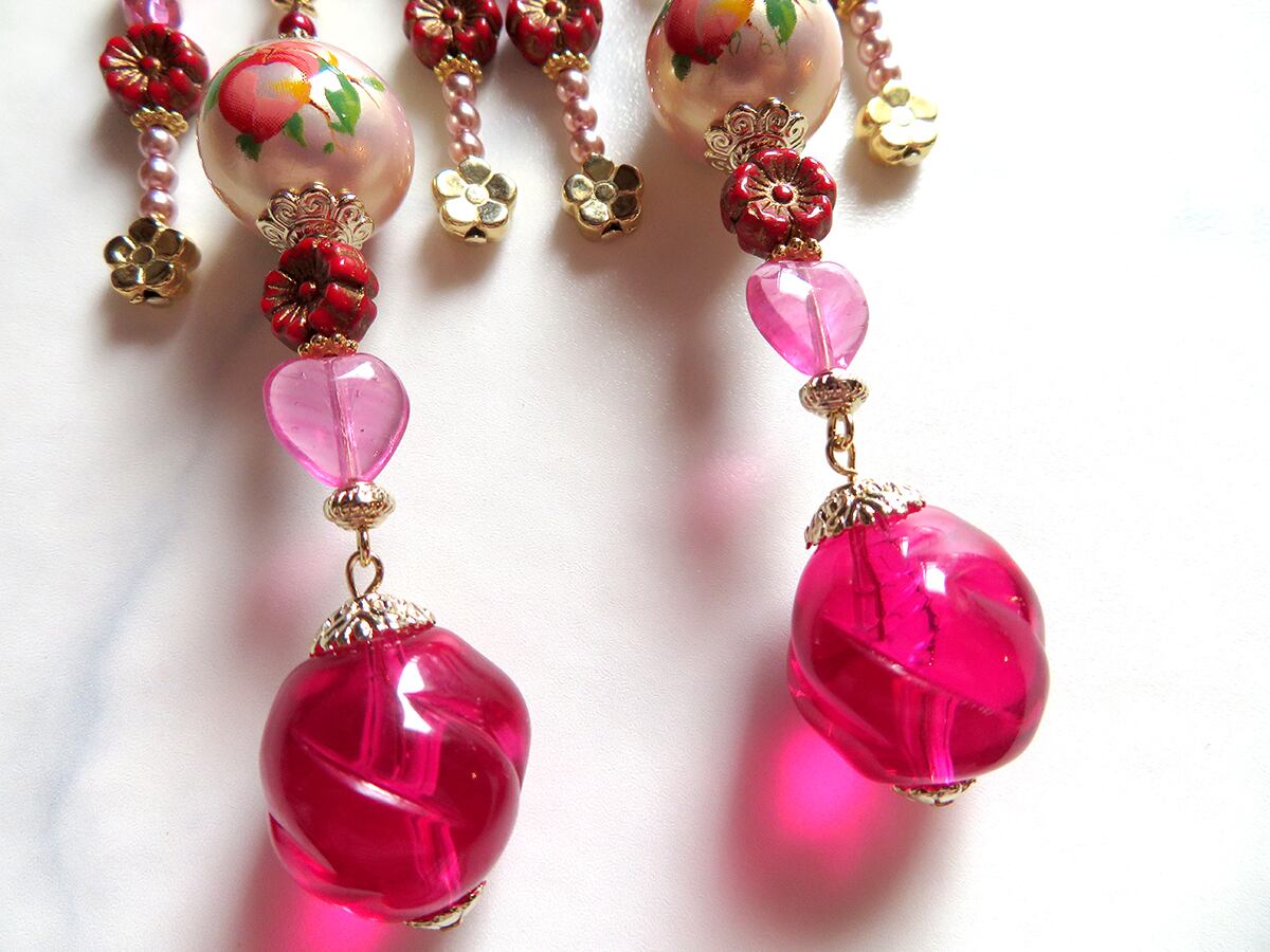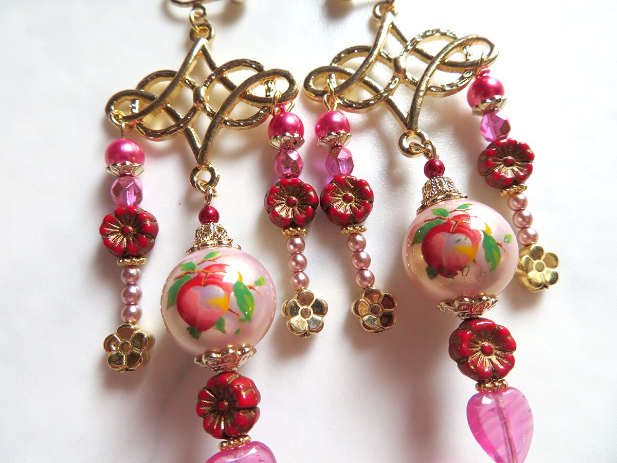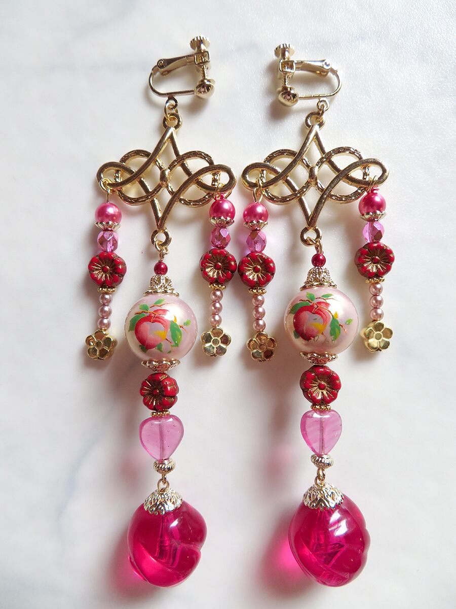 フルーツ柄のビーズはピンクのパーライズがかっています。