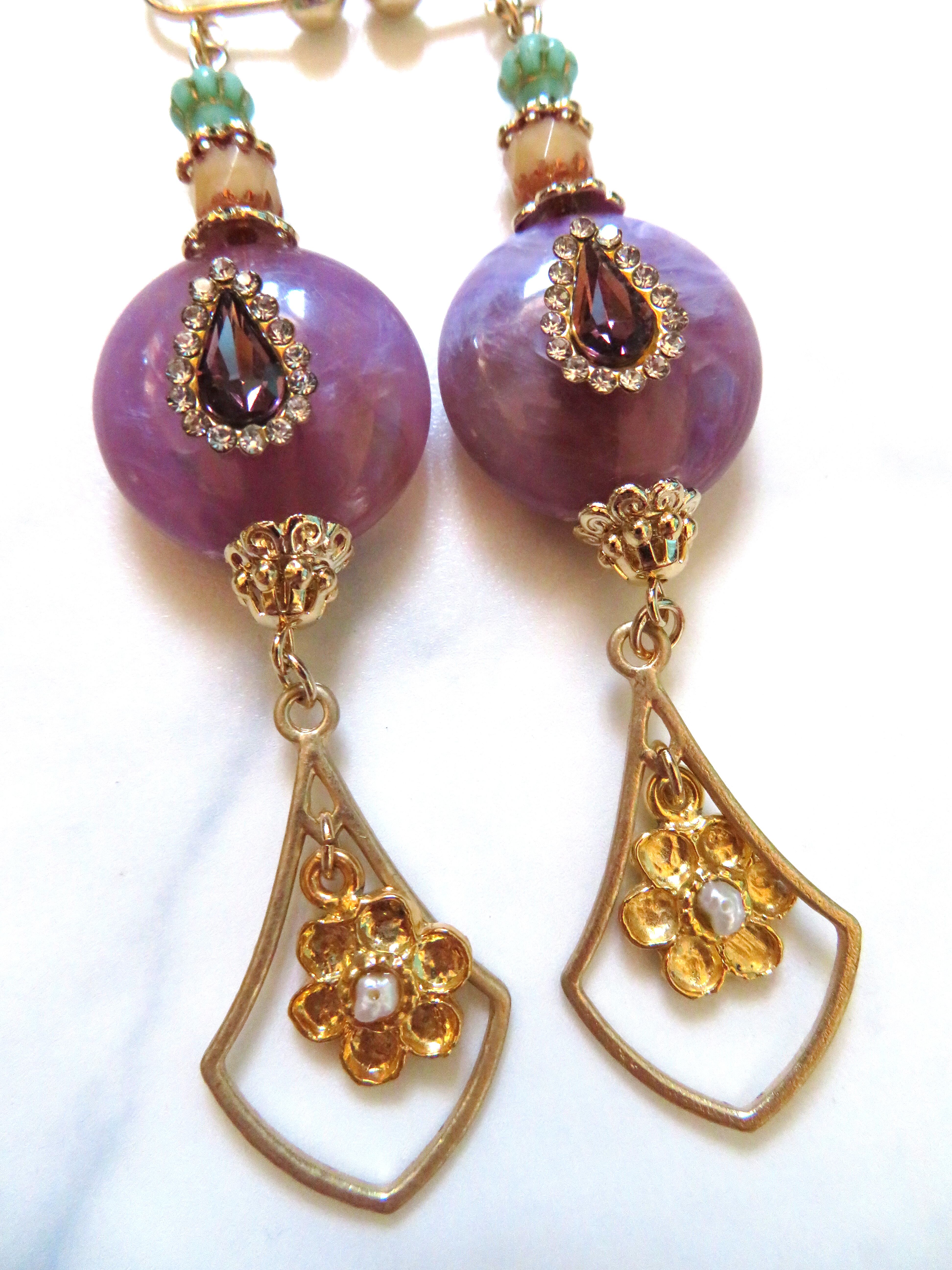 紫のマーブルビーズとビンディの様なビジューがエキゾチックな雰囲気。