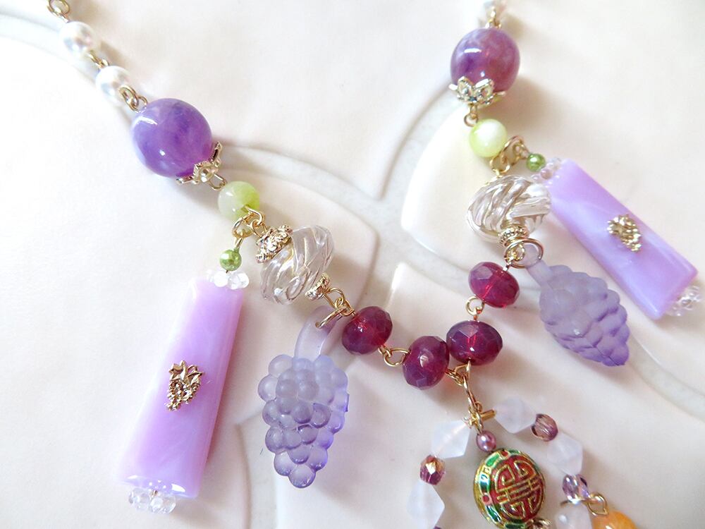 桃源郷茶会ネックレス(桜桃、葡萄)