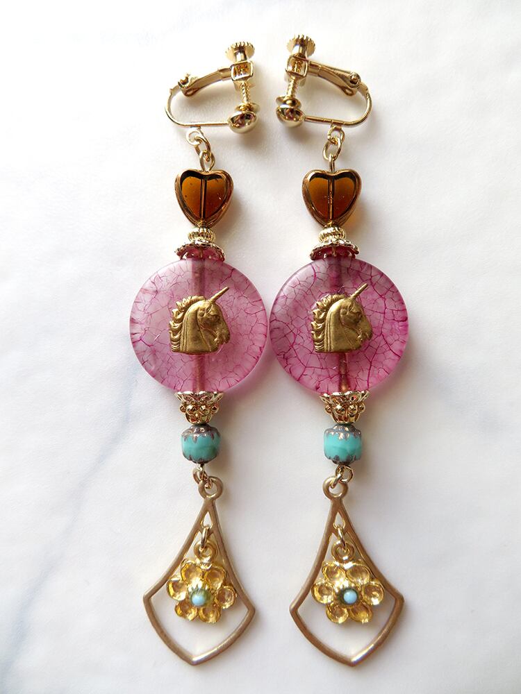 お花のチャームは天然石がついています。ユニコーンのブラスは片面のみ。