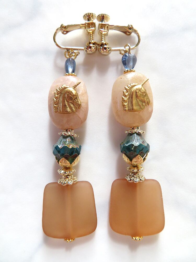 ビーズの模様の出方はそれぞれ異なります。ユニコーンのブラスは片面のみです。