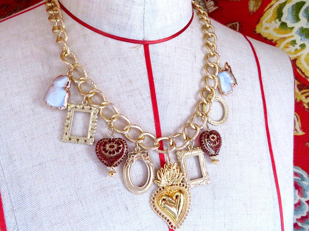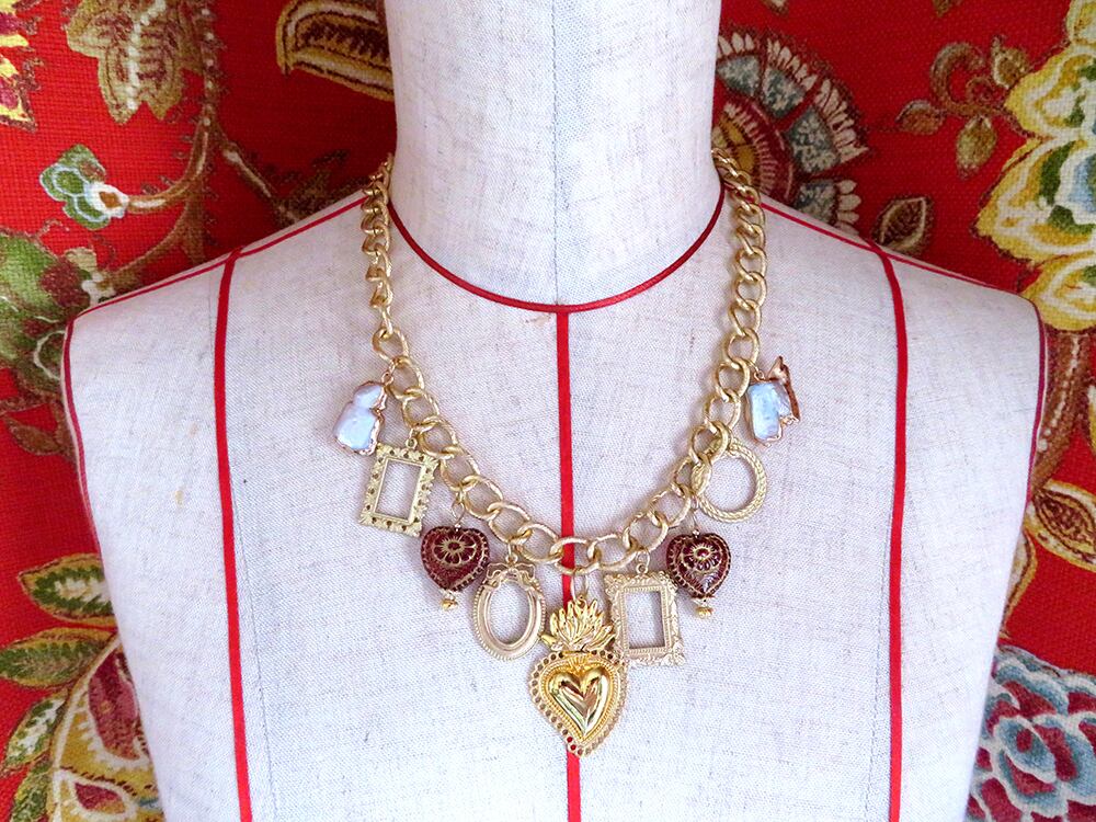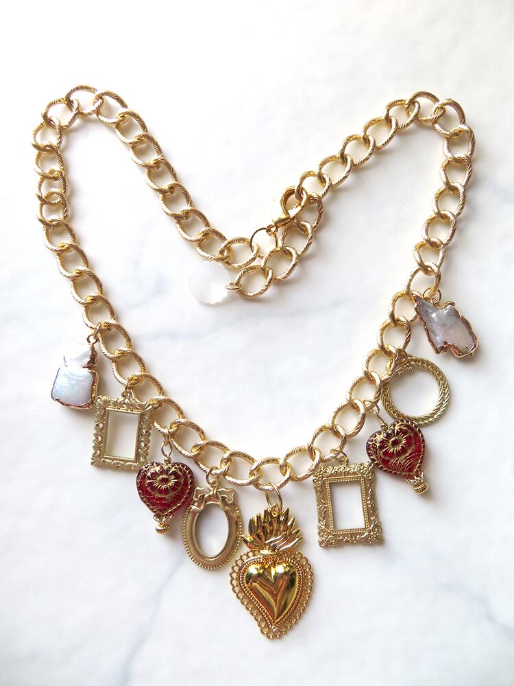 モチーフチャームが沢山ついており、着用するだけでコーディネートのポイントになるデザインです。