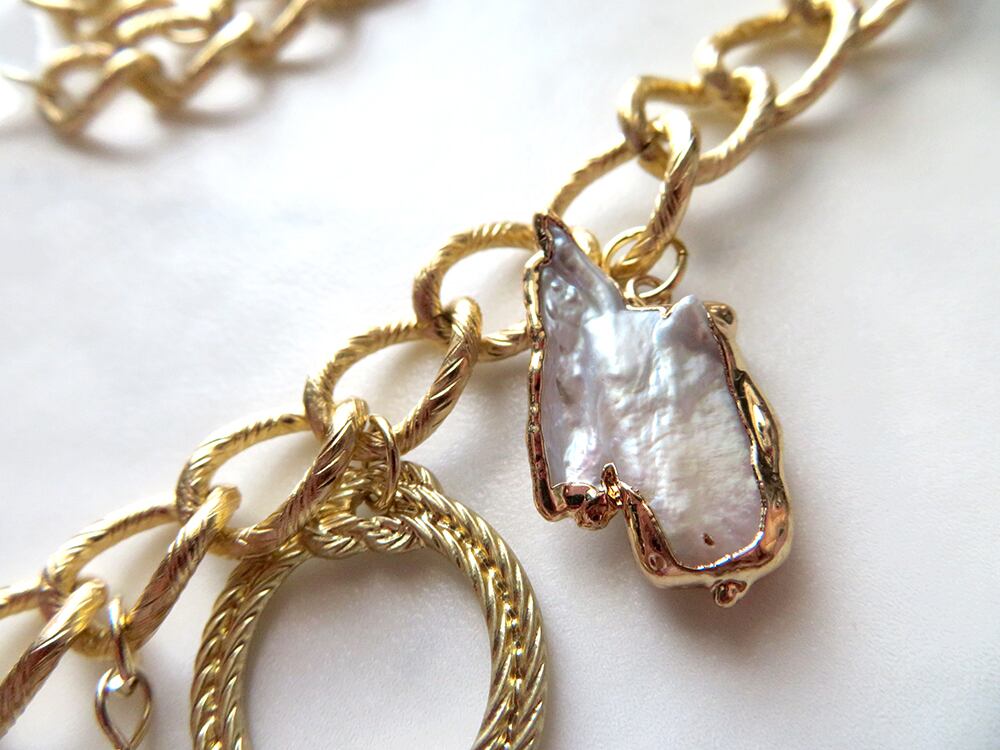 チェーンの好きな位置でカニカンを留めることで、長さをある程度好きに変えられます。