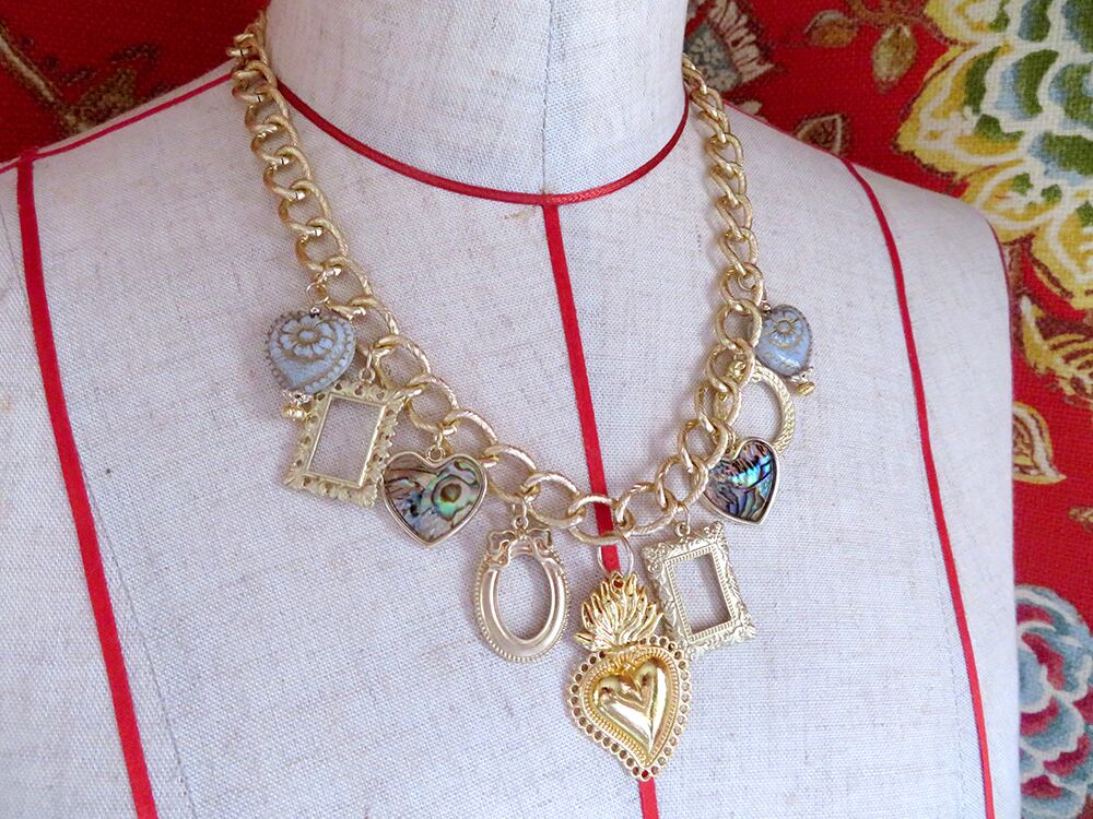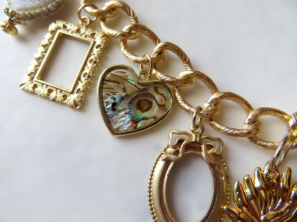 モチーフチャームが沢山ついており、着用するだけでコーディネートのポイントになるデザインです。