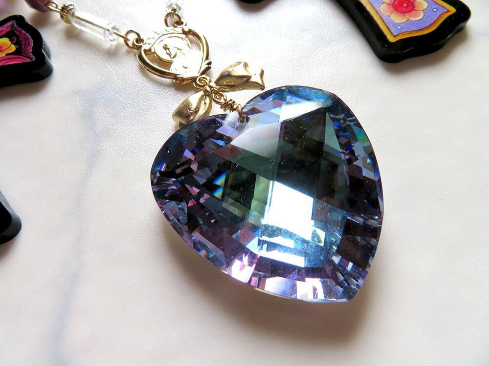 中央のプリズムカラーの♡チャームがファンタジーなネックレス。