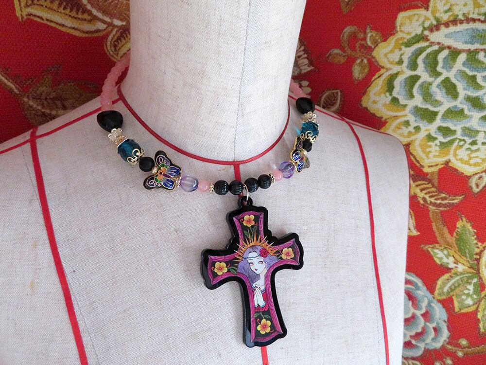 中華ビーズとブラック×ピンクで可愛くも強いシノワズリなジュエリーのイメージで制作しました。
