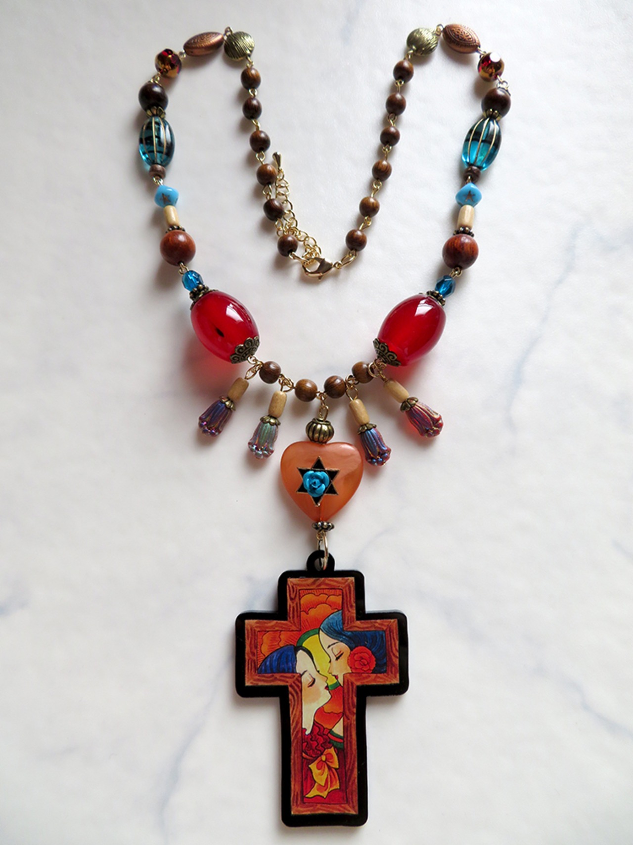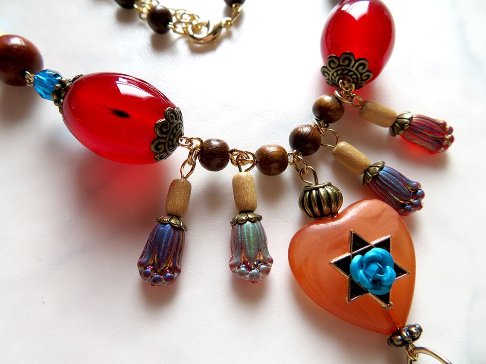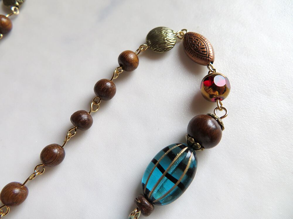 ウッドビーズをふんだんに使い、ネイティブなイメージになるよう制作しました。