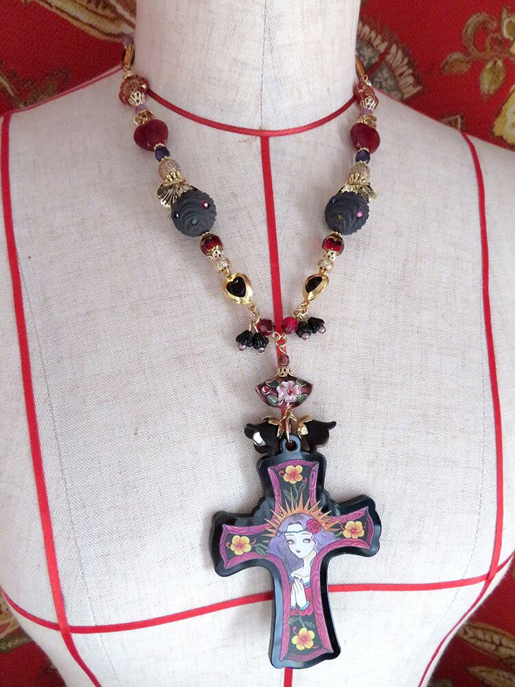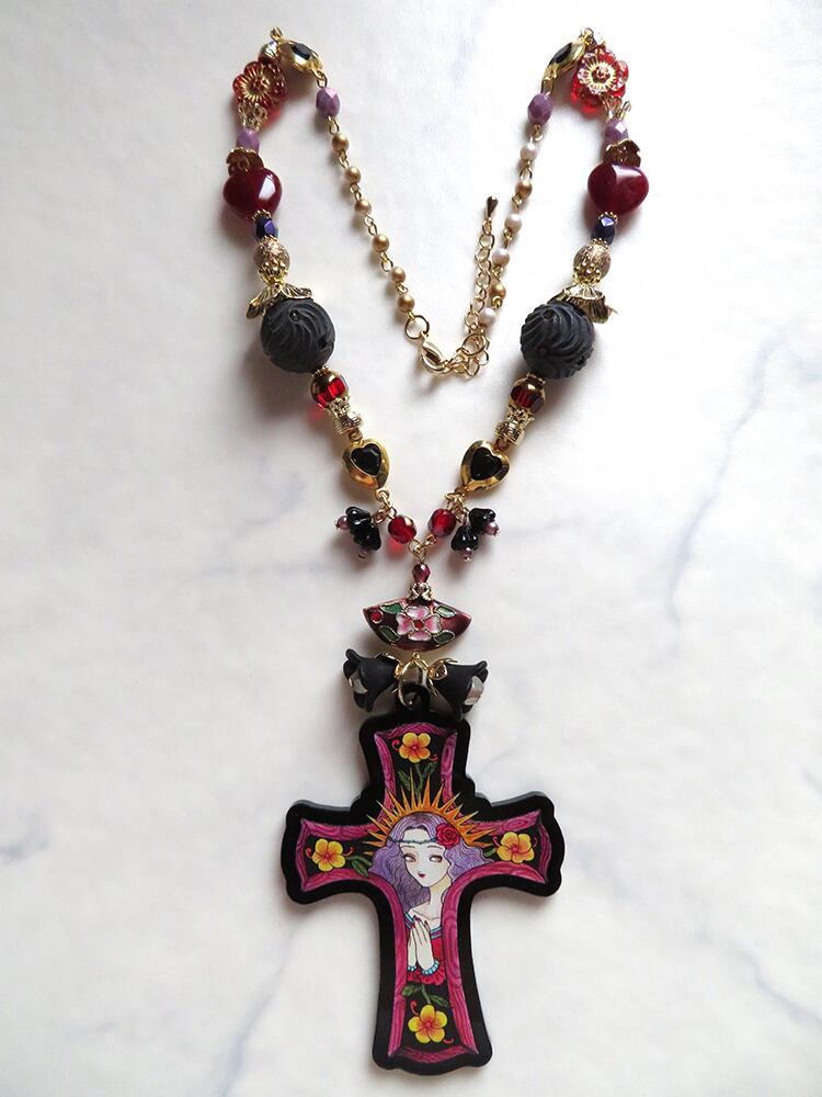七宝焼がシノワズリな印象の黒ロザリオ。