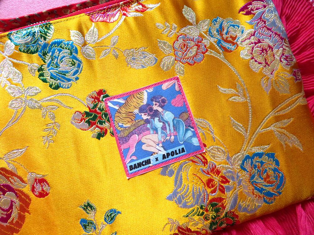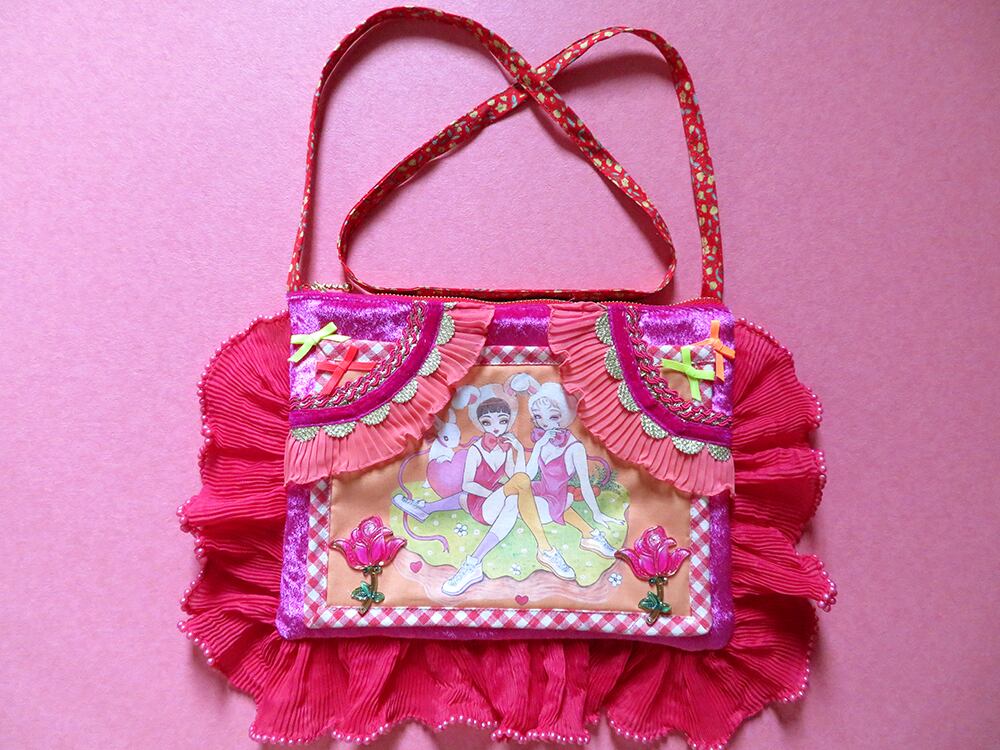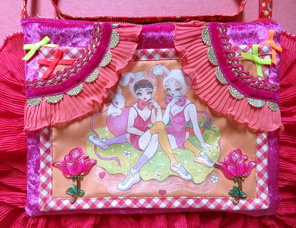 イラストレーター番地のイラストのプリント生地を使用したオリジナルポシェット。