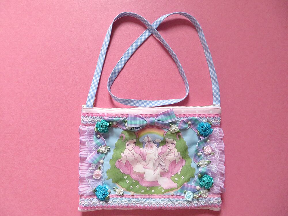 イラストレーター番地のイラストのプリント生地を使用したオリジナルポシェット。