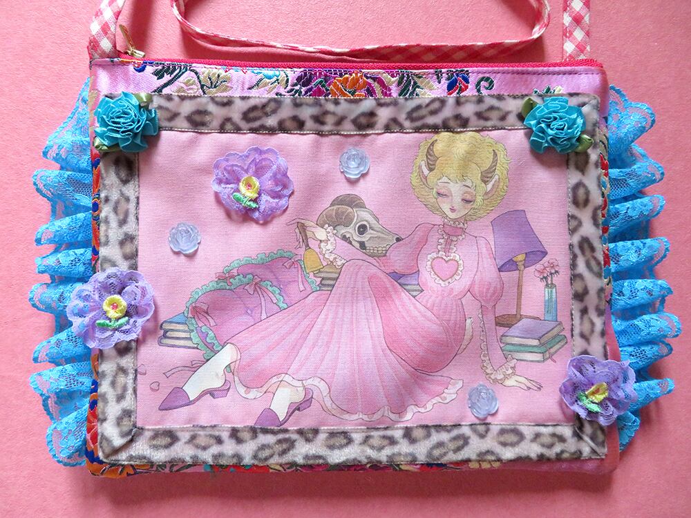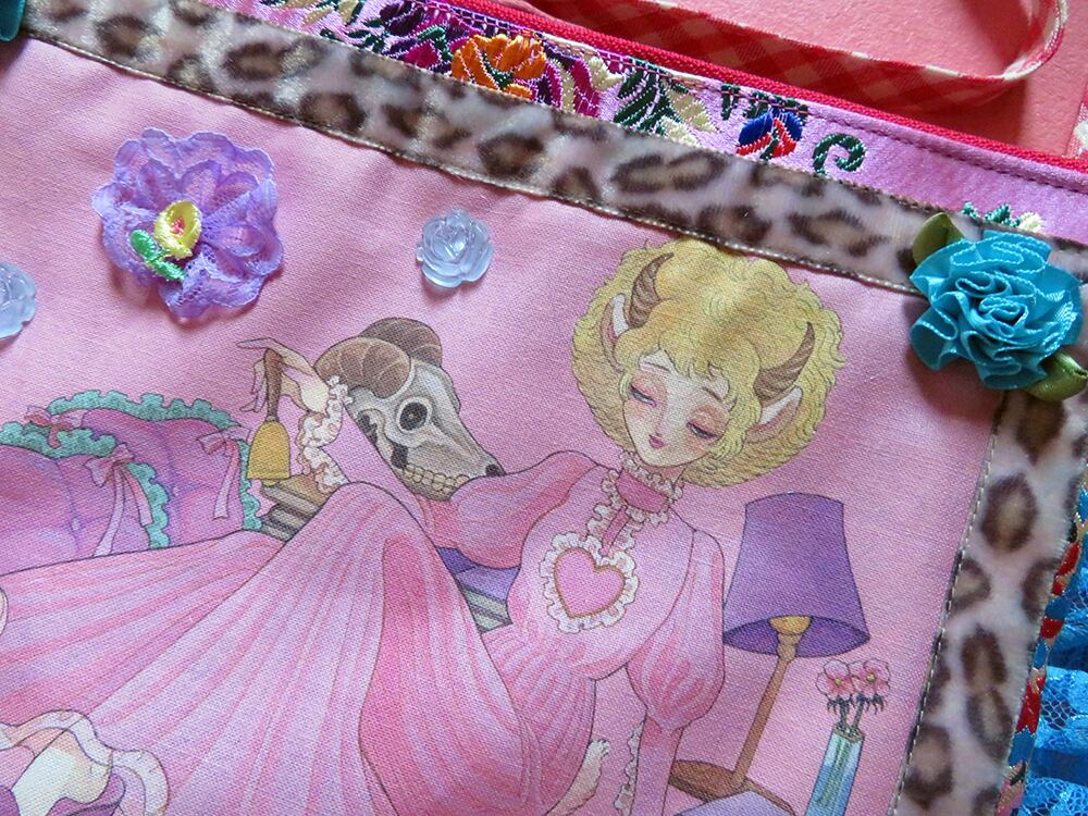 イラストレーター番地のイラストのプリント生地を使用したオリジナルポシェット。