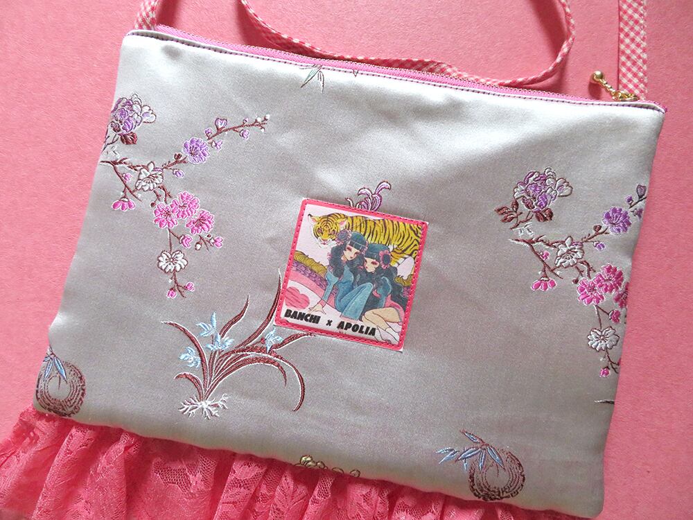 イラストレーター番地のイラストのプリント生地を使用したオリジナルポシェット。