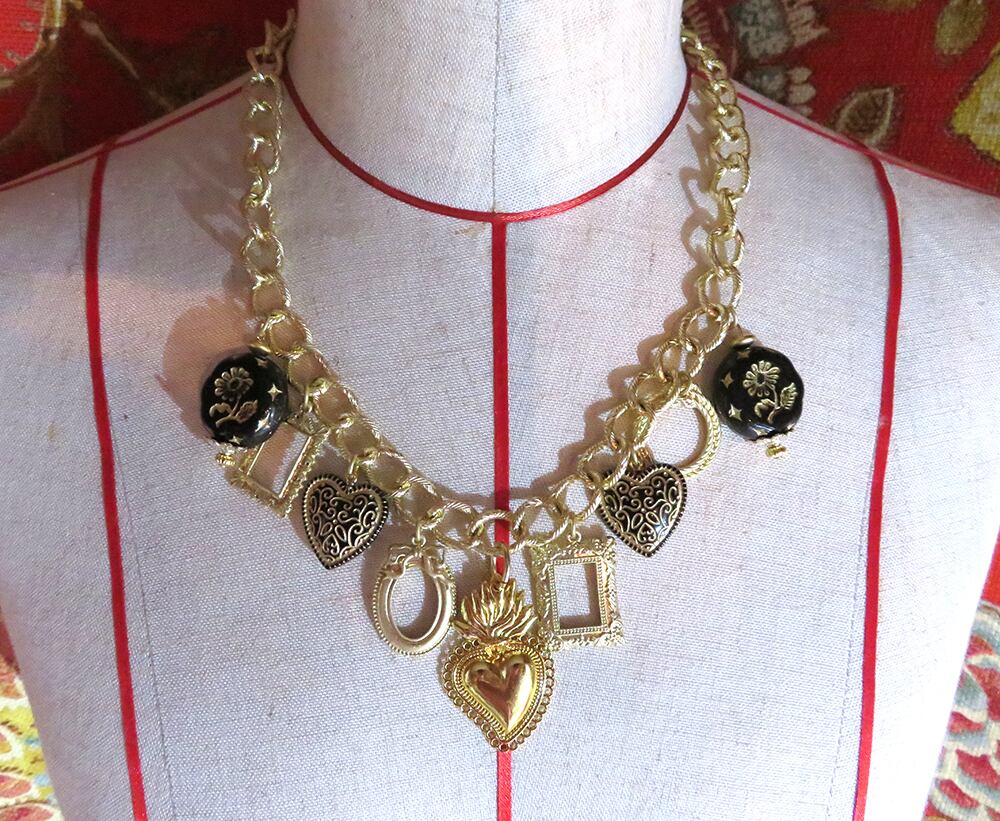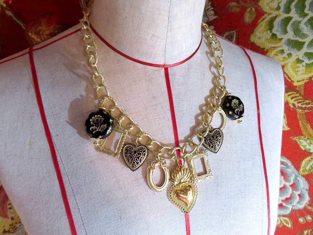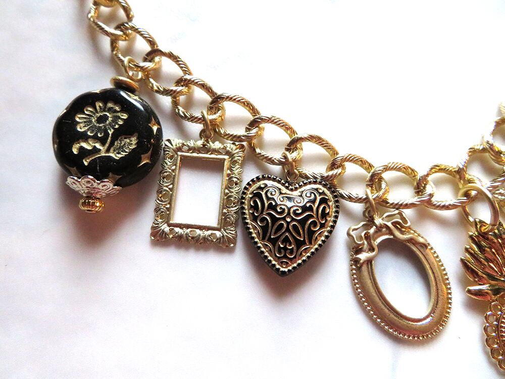モチーフチャームが沢山ついており、着用するだけでコーディネートのポイントになるデザインです。
