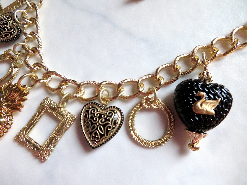 モチーフチャームが沢山ついており、着用するだけでコーディネートのポイントになるデザインです。