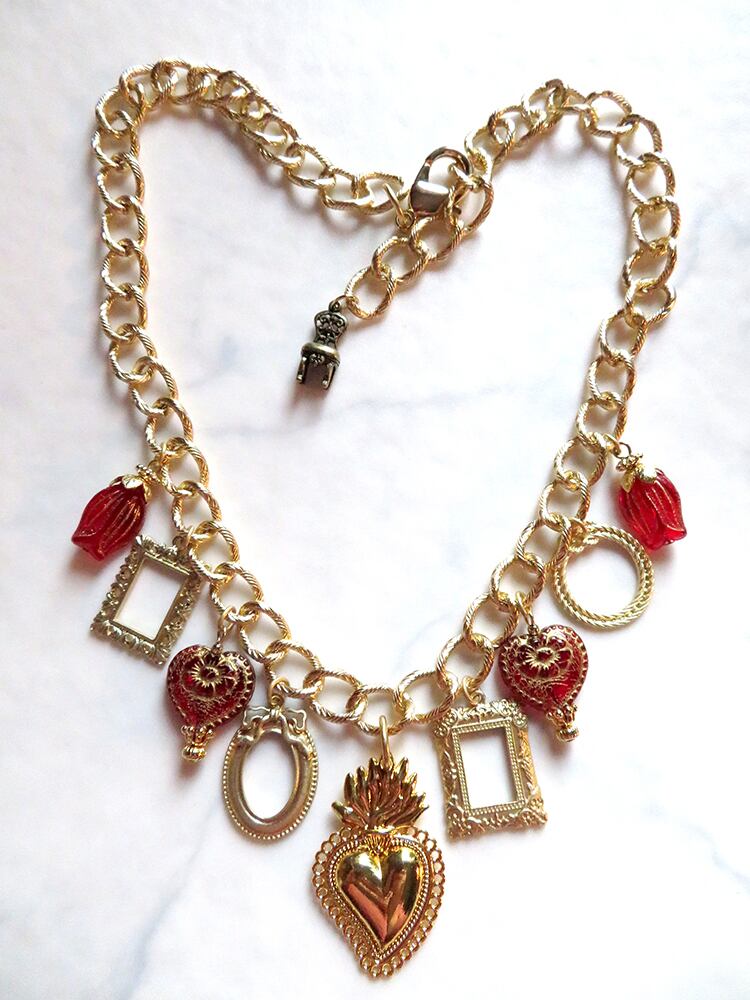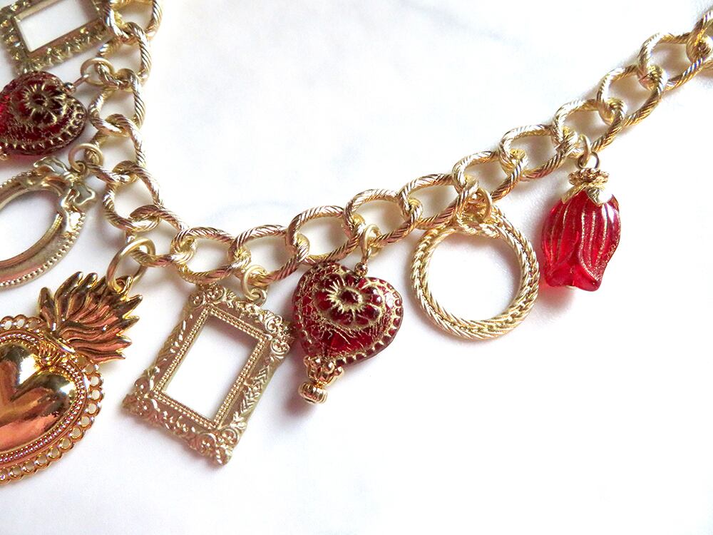 モチーフチャームが沢山ついており、着用するだけでコーディネートのポイントになるデザインです。