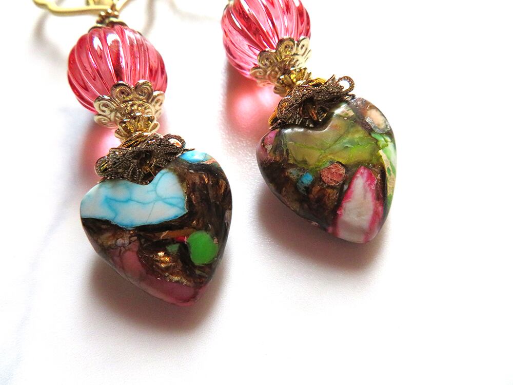 ハートのチャームは天然素材の為、柄の出方がひとつひとつ異なります。