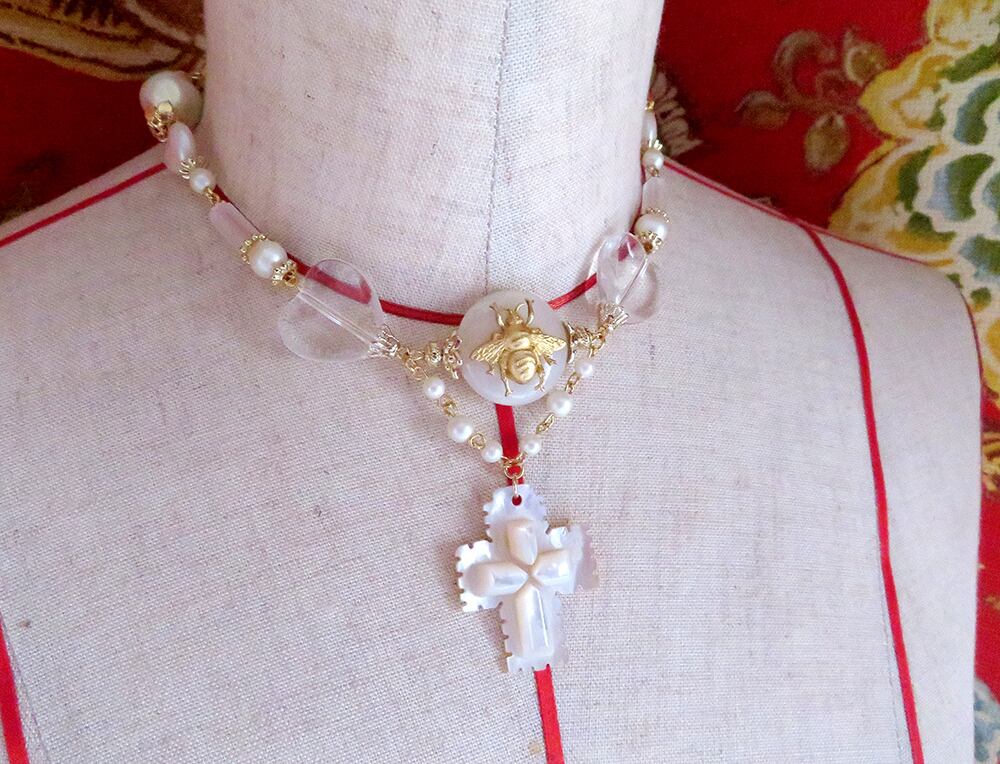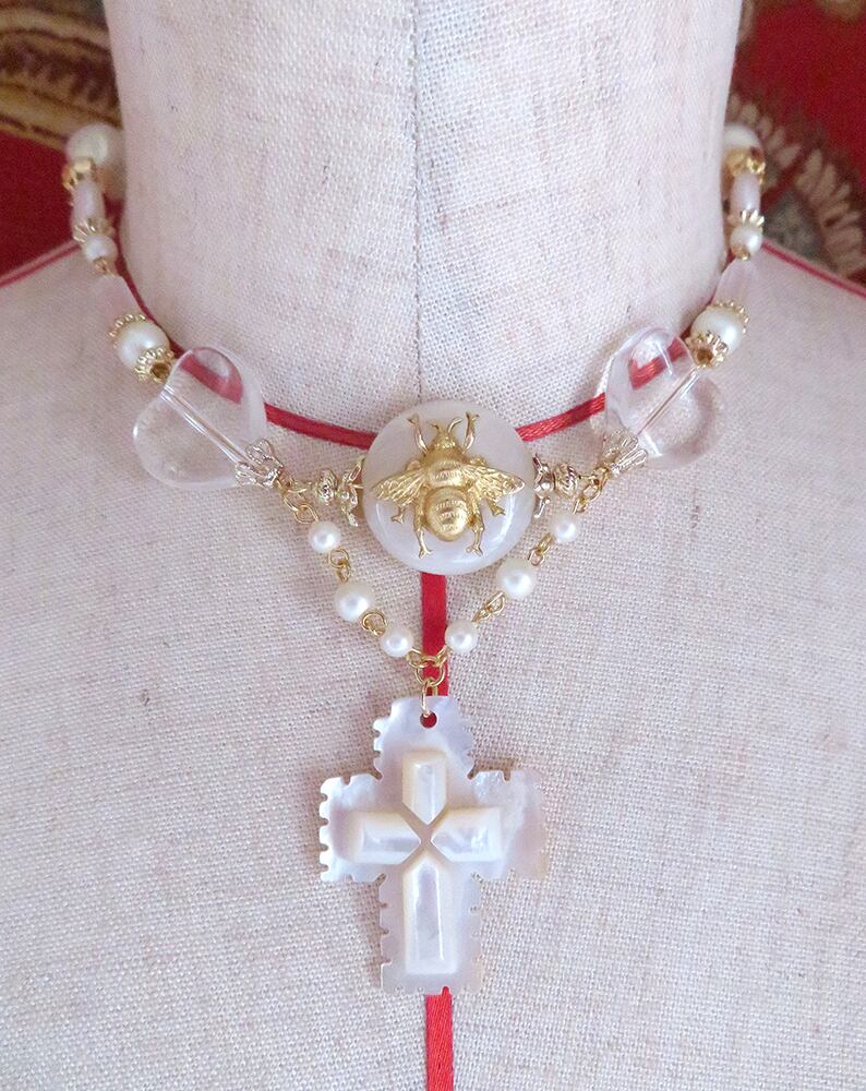 りぼんで長さを調節できるので、チョーカーの様に首にフィットさせたり、緩く結んでネックレスの様に着ける事もできます。