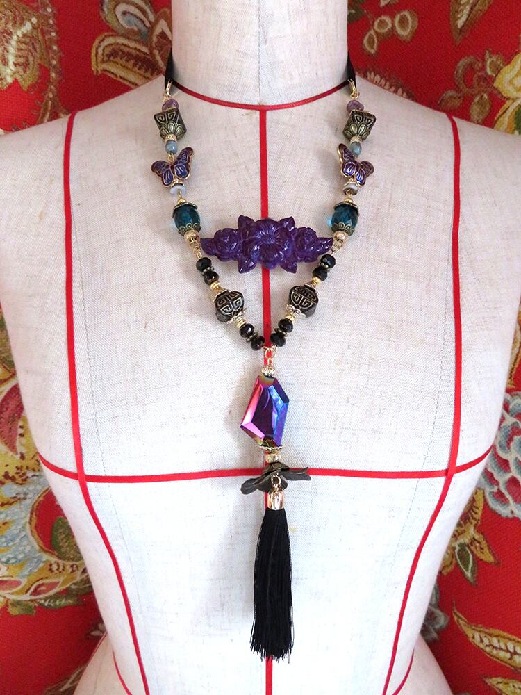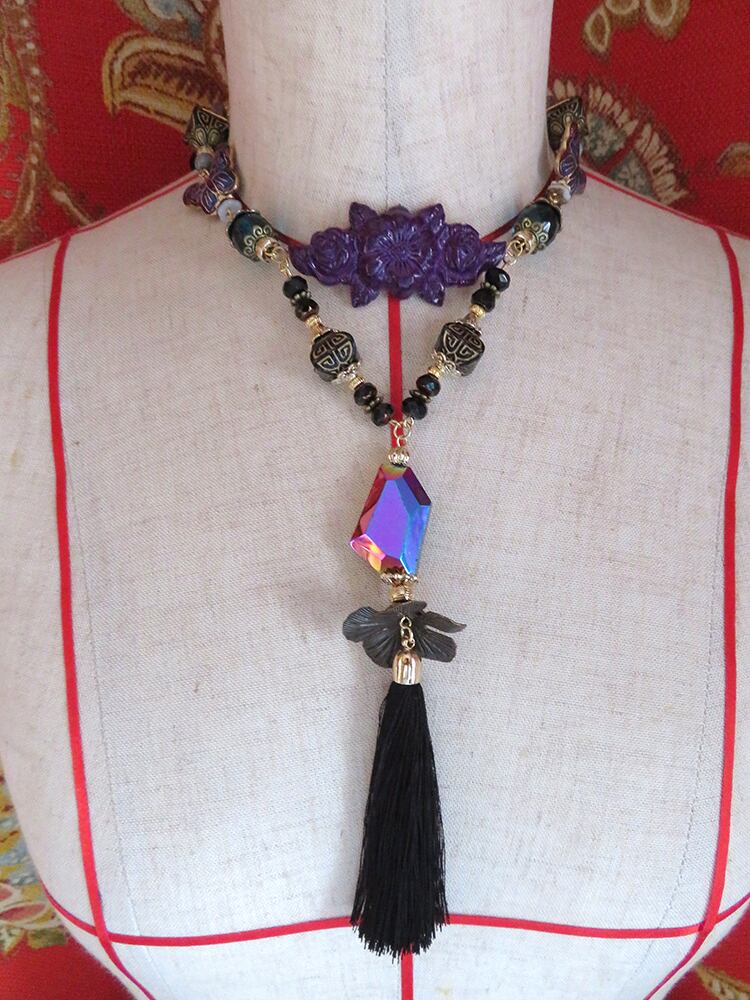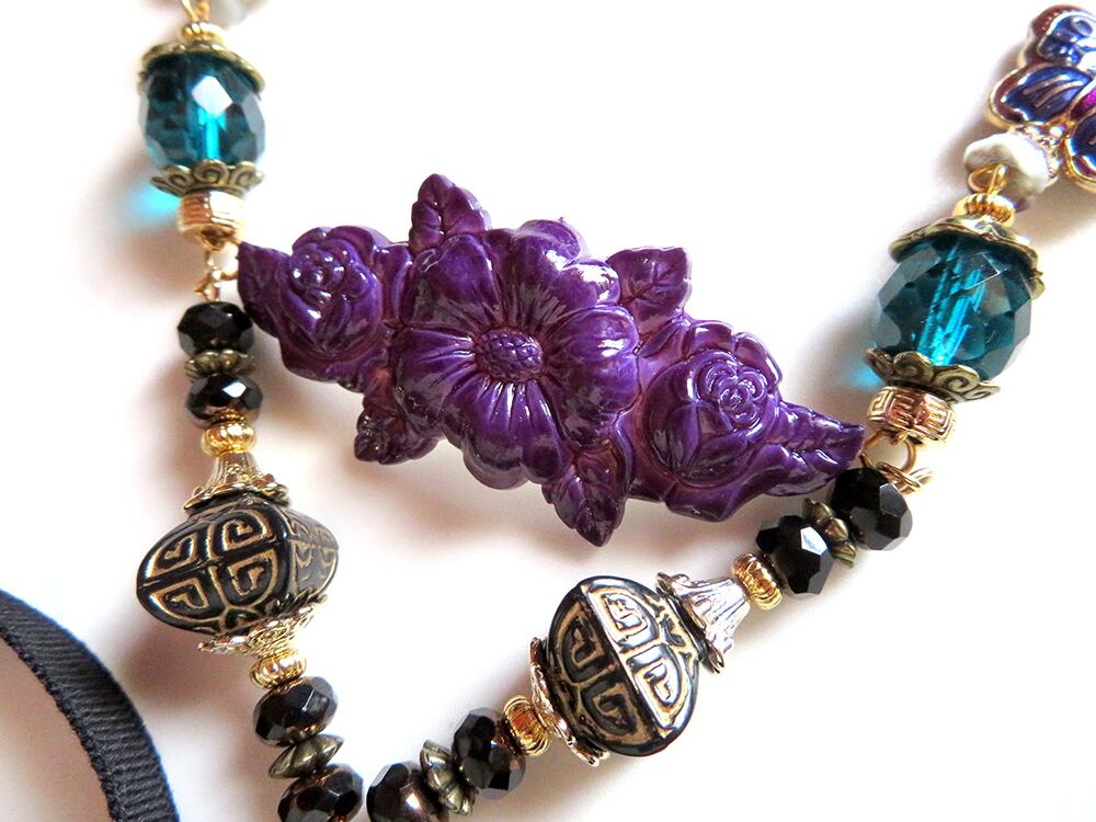 りぼんで長さを調節できるので、チョーカーの様に首にフィットさせたり、緩く結んでネックレスの様に着ける事もできます。