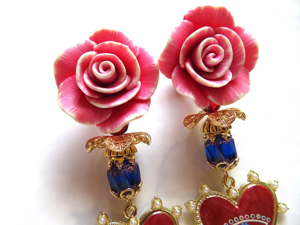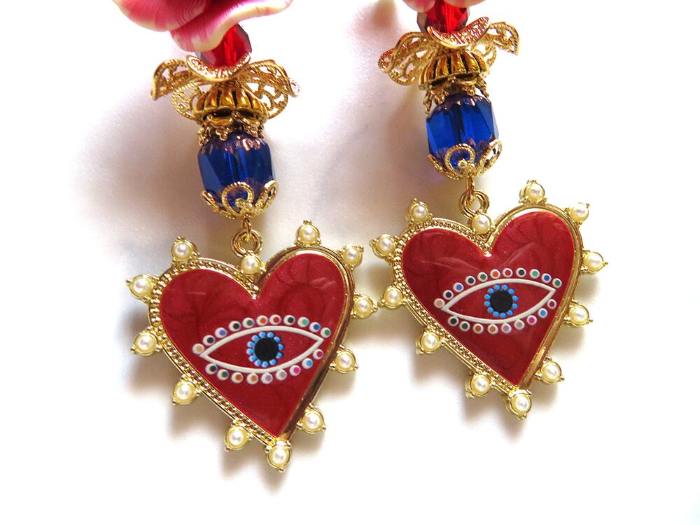 大きなラバーローズと瞳のチャームがこちらを覗く耳飾り。