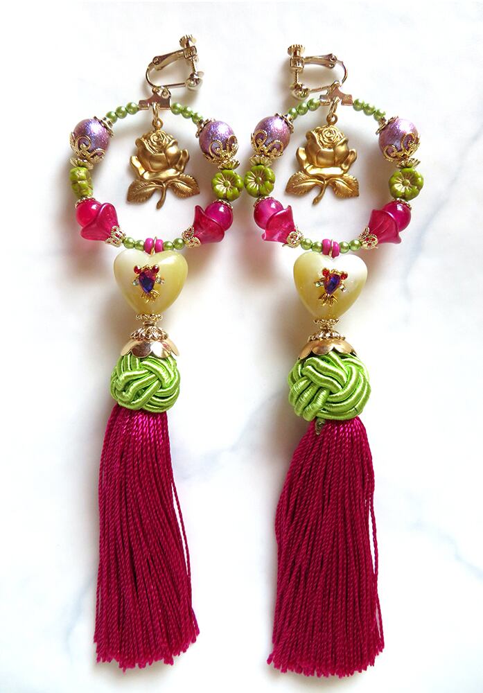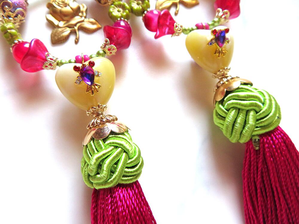 タッセルのカラーはリーフグリーンとマゼンダ寄りのショッキングピンクです。