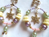巨人の盤古が使う栞をイメージした大振りのタッセルと、物語をイメージした装飾的なフープが華やかなデザインです。