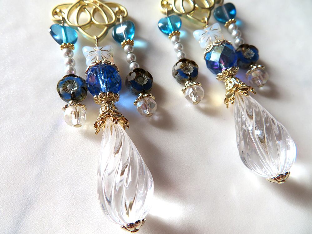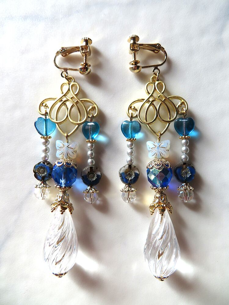 天然石や不思議な光り方をするアクリルビーズ、様々な硝子ビーズなどを使用しこの世には存在しない架空の宝石たちをデザインしました。