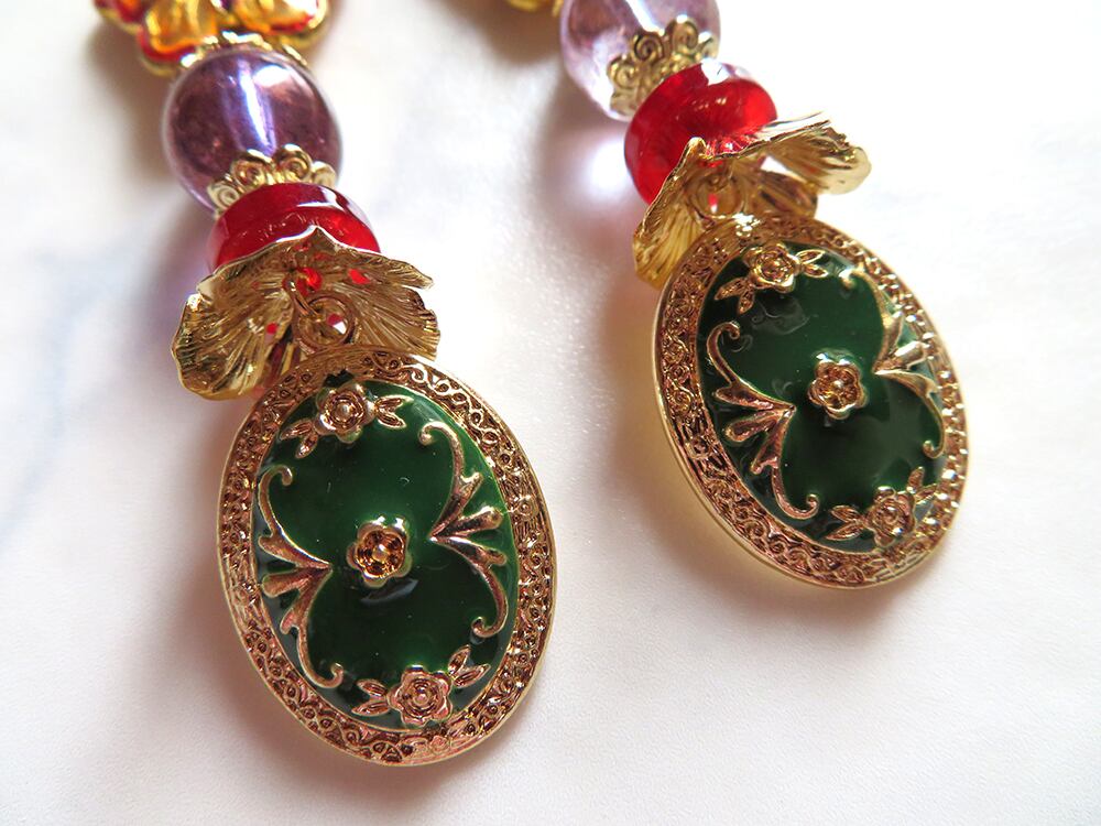 朱いオニユリの小箱に入った、遠い東の異国からのお土産をイメージした耳飾り。