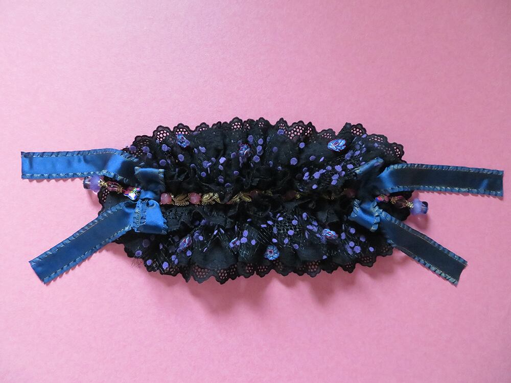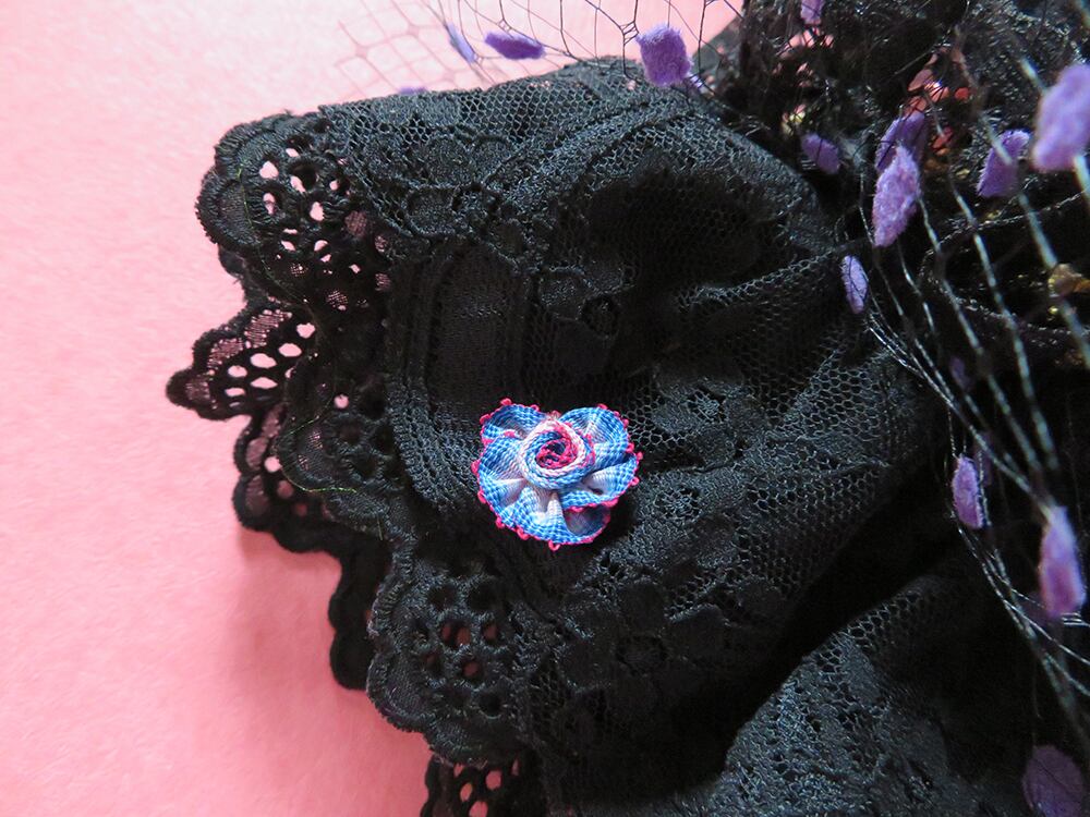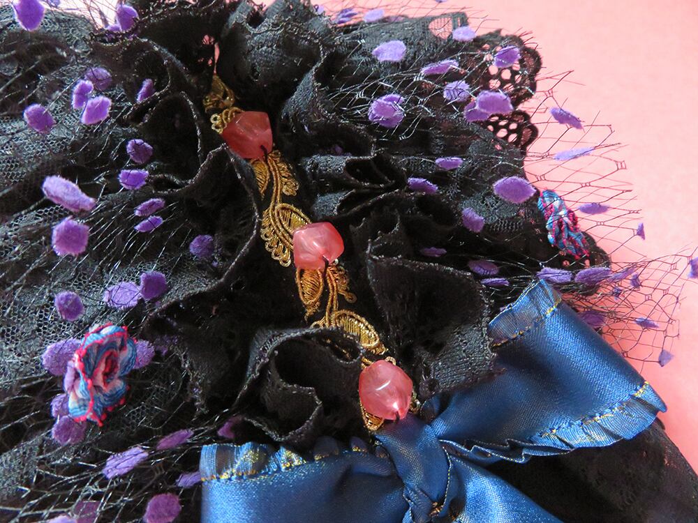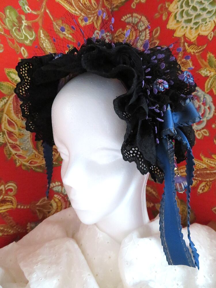 黒いレースとフロッキーチュールのフリルをふんだんに使用したヘッドドレス。