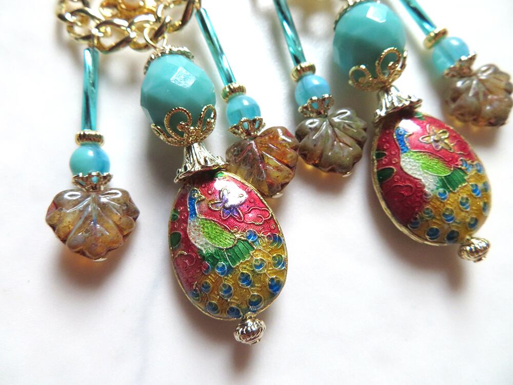 孔雀柄の七宝焼が珍しいデザインです。
