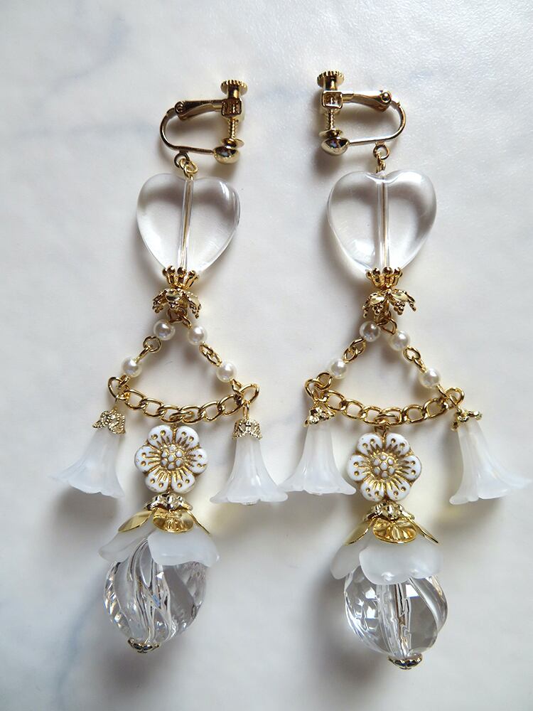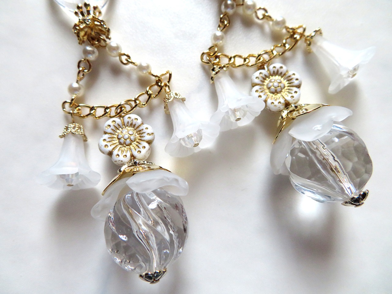 クリアやフロストが美しいドイツビーズをメインに、アクリル、プラ、チェコ硝子、ヴィンテージビーズ等をふんだんに使用し、夏の気分を薄荷水の様に爽やかに盛り上げてくれるクリアデザインを制作しました。