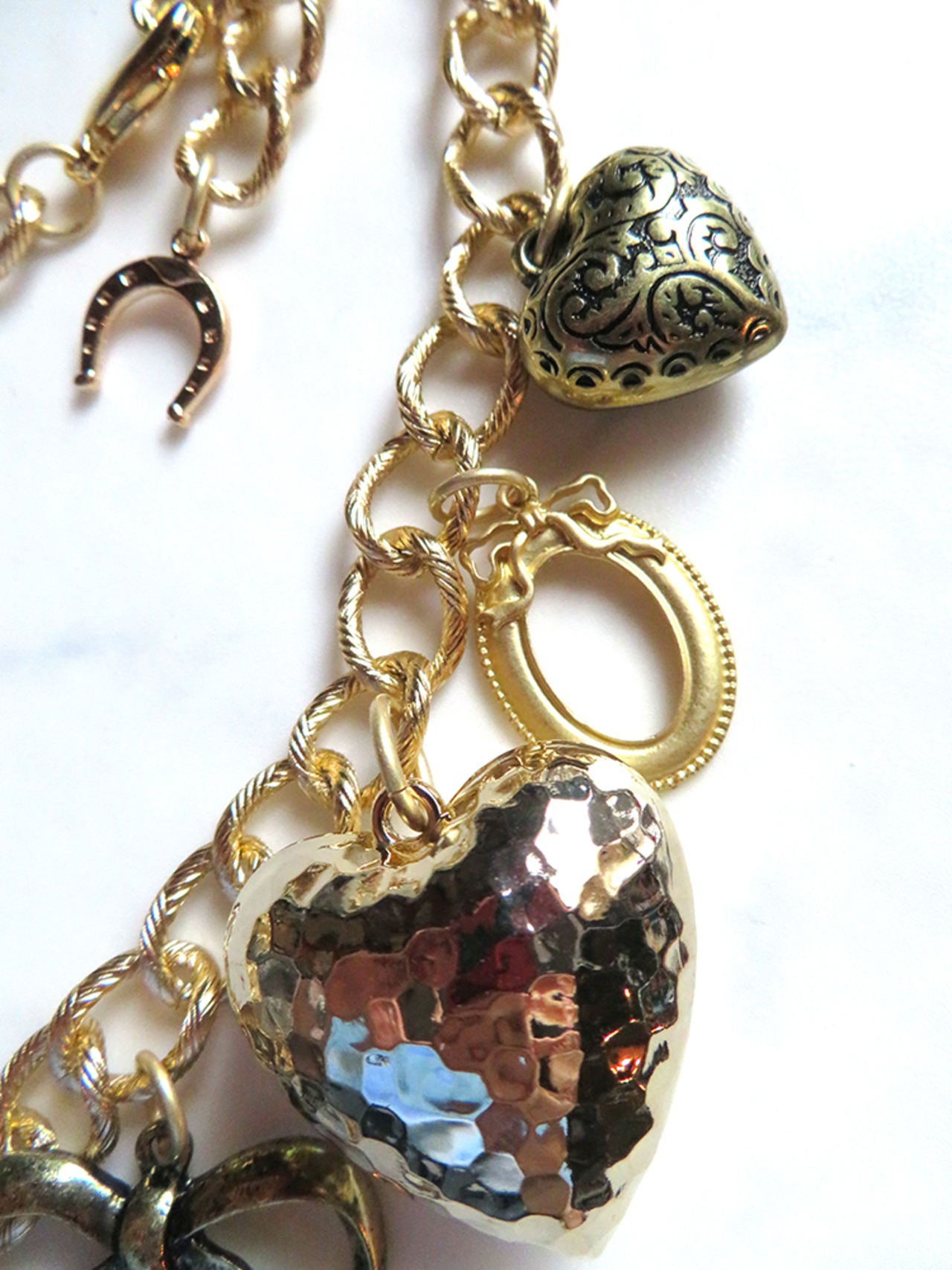 贅沢にチャームがついているので、着用するだけで胸〜首周りのコーディネートが決まるデザインです。