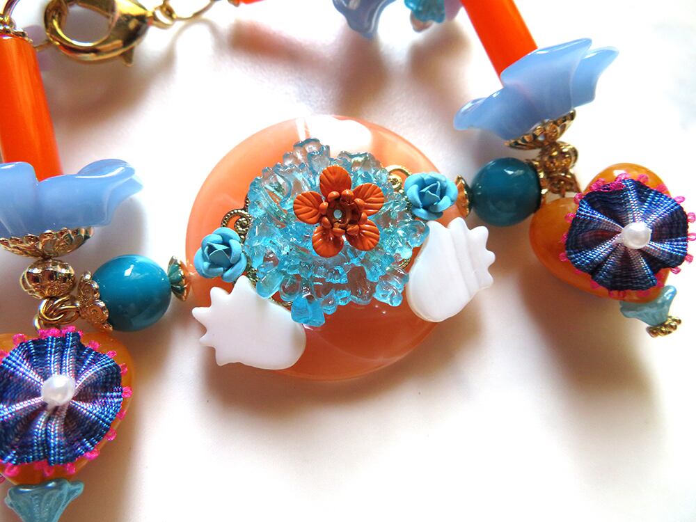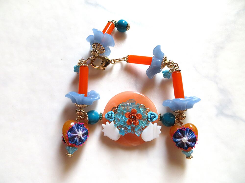極楽鳥婦人の天井庭園ブレスレット(オレンジ小花)
