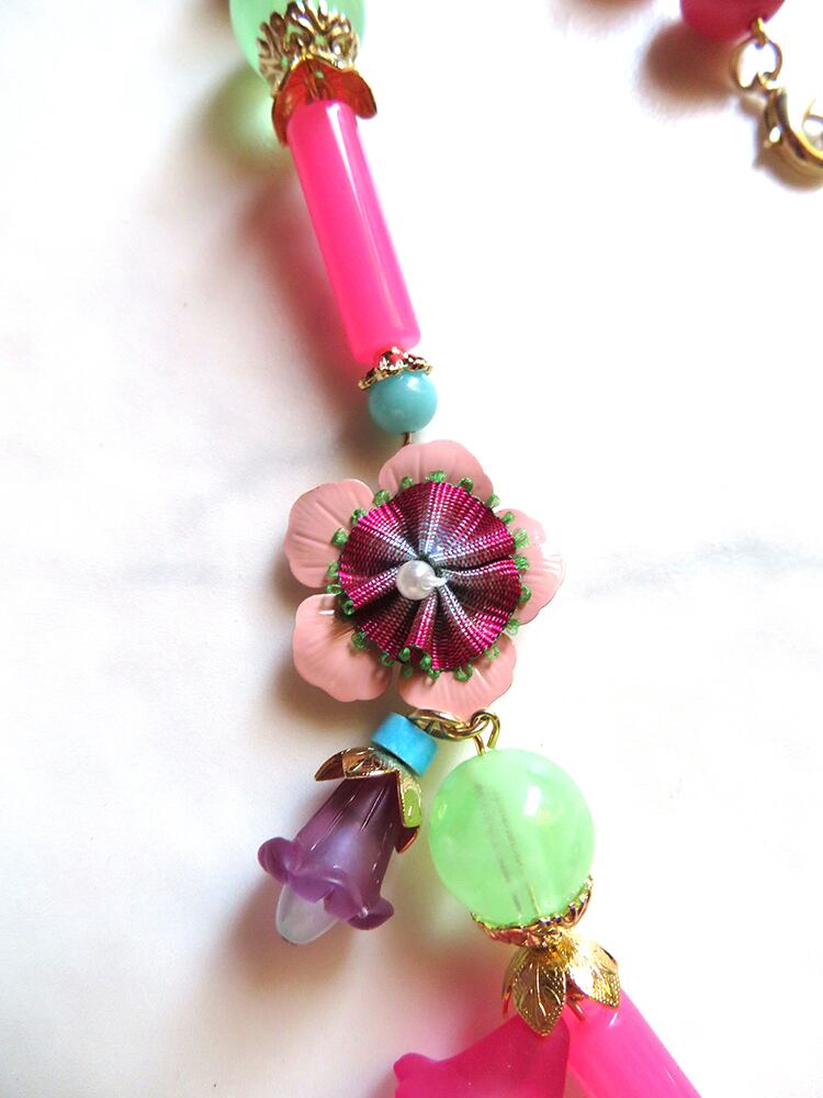極楽鳥婦人の天井庭園ネックレス(ピンクグリーンフラワー)